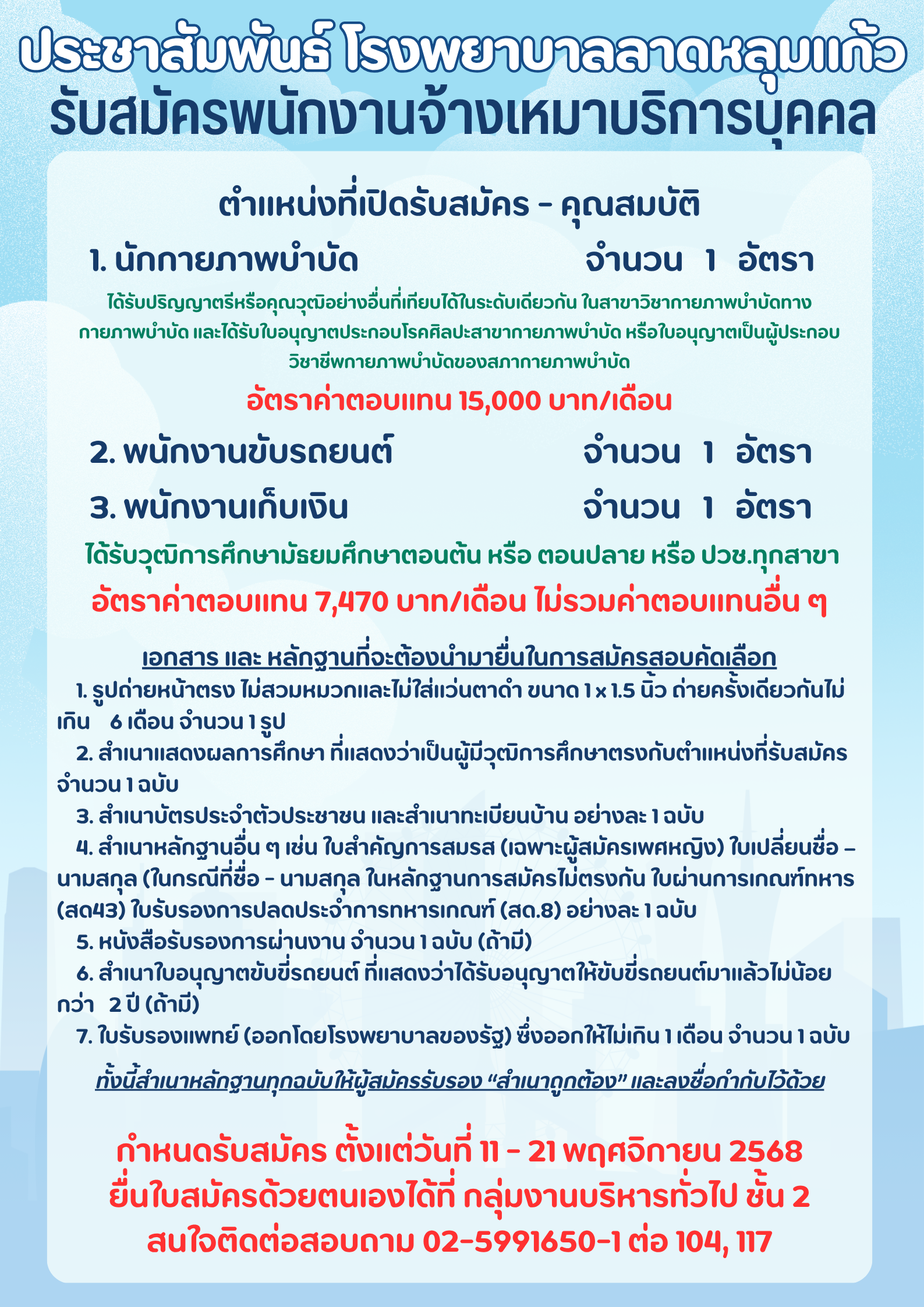 ประกาศโรงพยาบาลลาดหลุมแก้ว เรื่อง การเปิดรับสมัครพนักงานจ้างเหมารายบุคคล