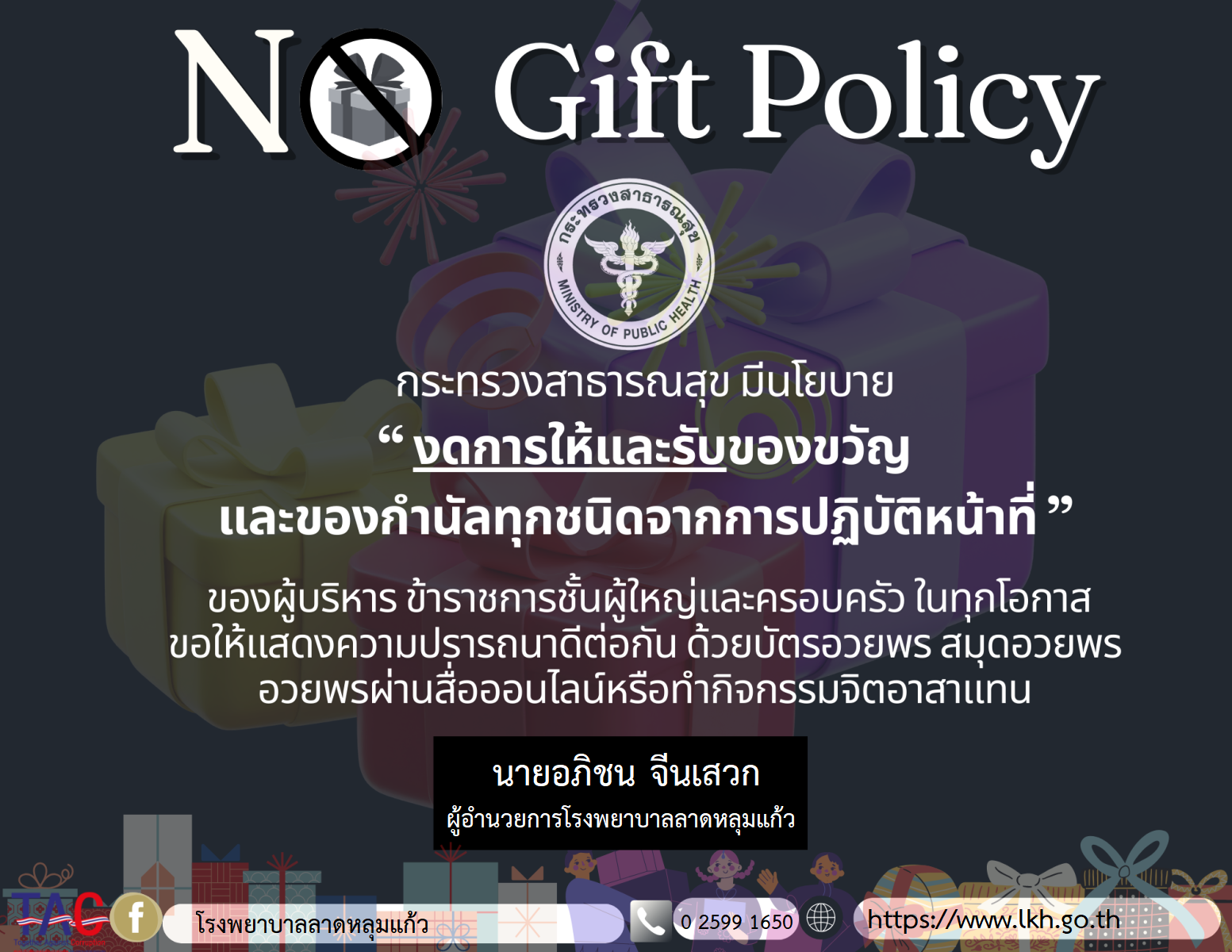 ประกาศนโยบายงดการให้และรับของขวัญและของกำนัลทุกชนิดจากการปฏิบัติหน้าที่